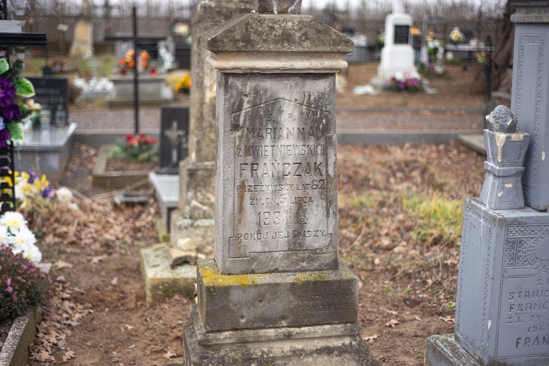 | Frańczak Anna zd.Tysa | 20.06.1893 | 31/01/1984 | 91 | G-252 | G-252 | ||